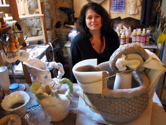 I listen to people’s stories and compose them onto hand-built ceramic creations.” |